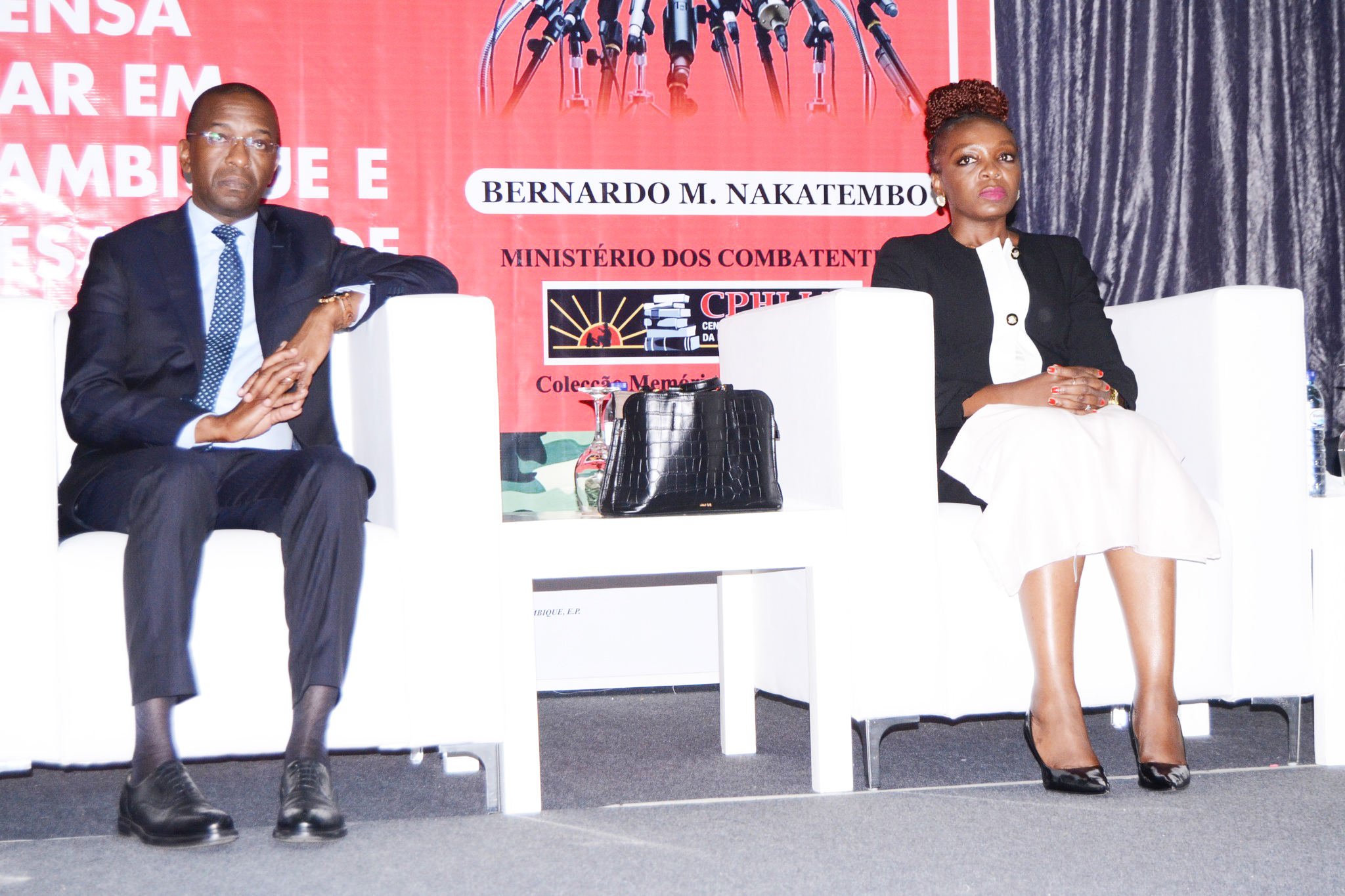 Os ministros da Defesa e dos Combatentes, Cristôvão Chume e Josefina Mpelo, marcaram presença no laçamento do livro de Bernardo Nakatembo. |