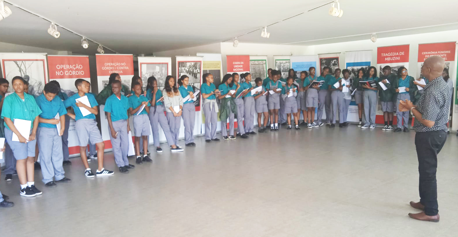 Estudantes do Colégio Kitabo na visita à exposição alusiva ao mês do Heróis Moçambicanos no Centro de Interpretação da História da Luta de Libertação Nacional |
